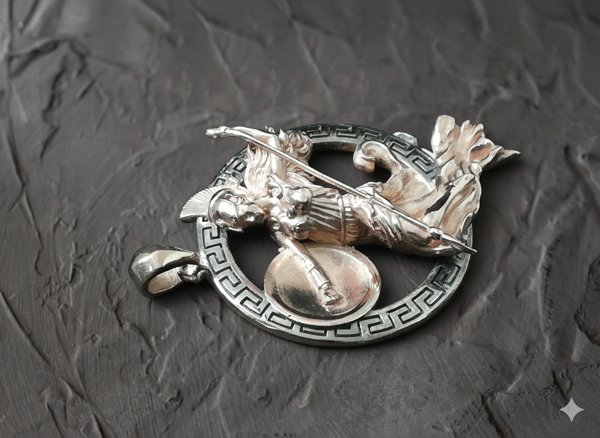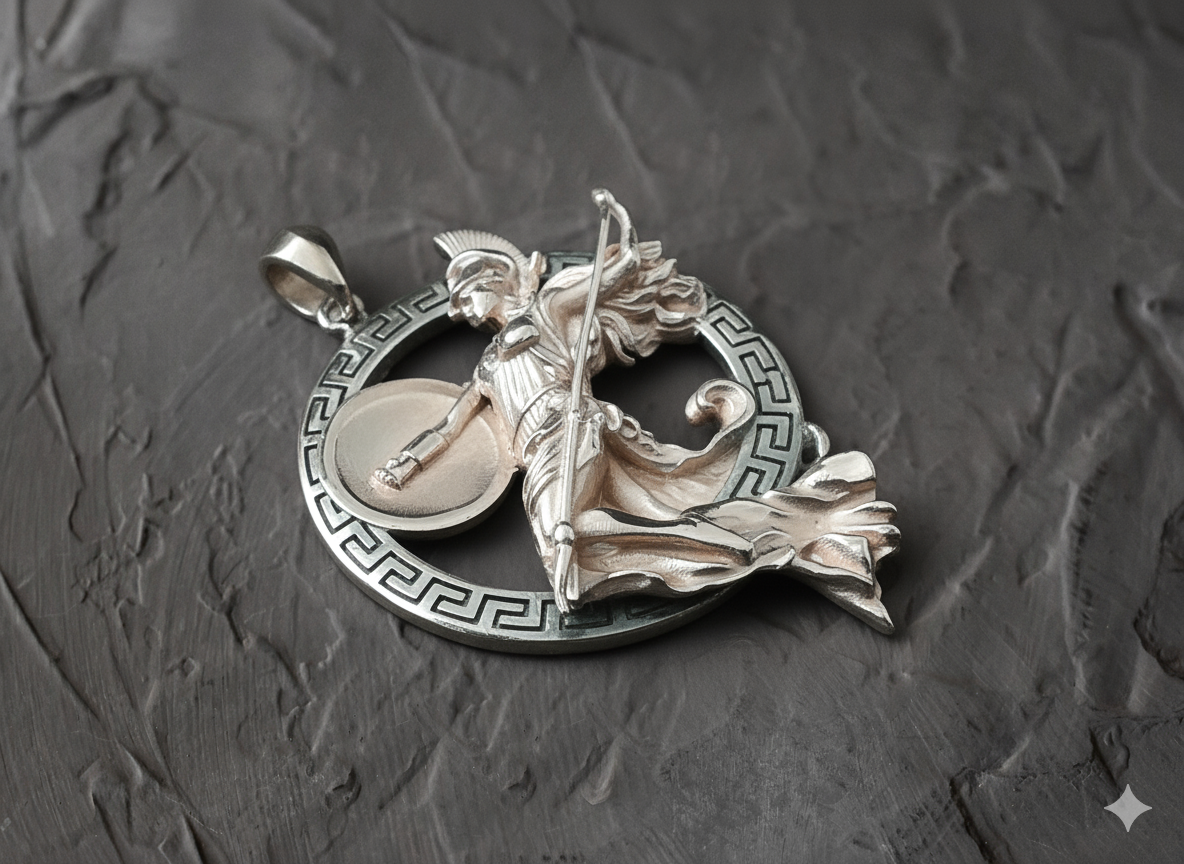 Meticulously handcrafted, each piece captures Athena’s commanding presence, symbolizing courage, clarity, and the pursuit of knowledge. Whether worn as a personal talisman or a statement of admiration for classical beauty, this pendant connects you to the enduring legacy of ancient Greece.