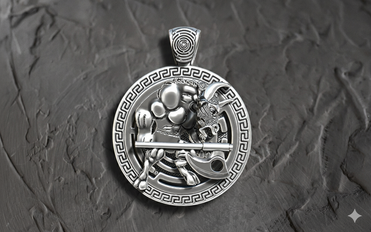 Crafted in sterling silver 925, the pendant can be plated in black rhodium or gold for a distinct finish. Custom finishes are also available upon request, allowing you to personalize this symbol of myth and history to your own taste.