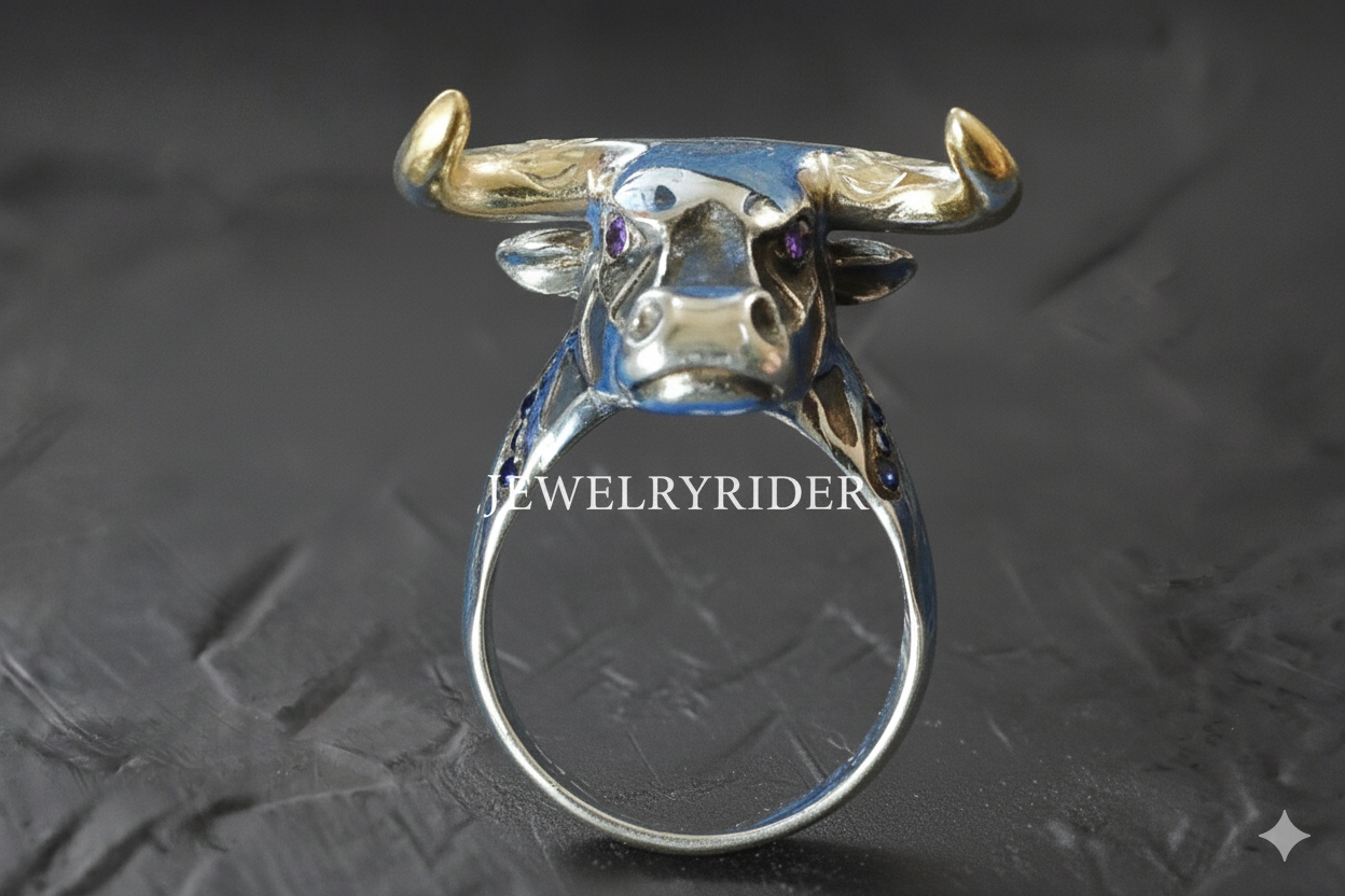 Unleash raw strength and unshakable resolve with The Bull Ring by Jewelyrider — a sculptural masterpiece that merges primal power with bold elegance. Featuring the head of a charging bull, this commanding design is crafted in rugged 925 sterling silver or warm 9K yellow gold, with expertly polished horns that glint with untamed energy.