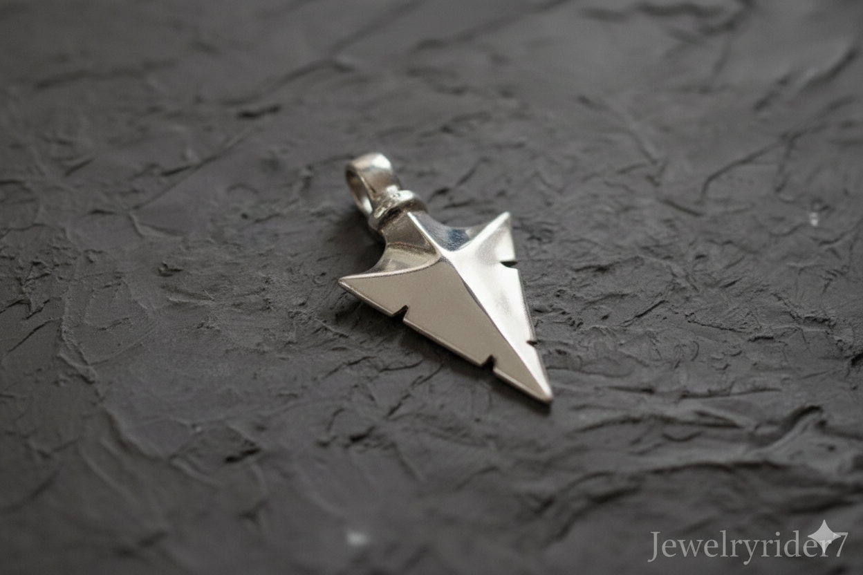 Sterling Silver 925: As seen in the image, the brilliant, cool luster of silver highlights the fierce, clean contours and modern aesthetic of the spearhead, offering a contemporary and bold appeal that speaks of clarity and strength.