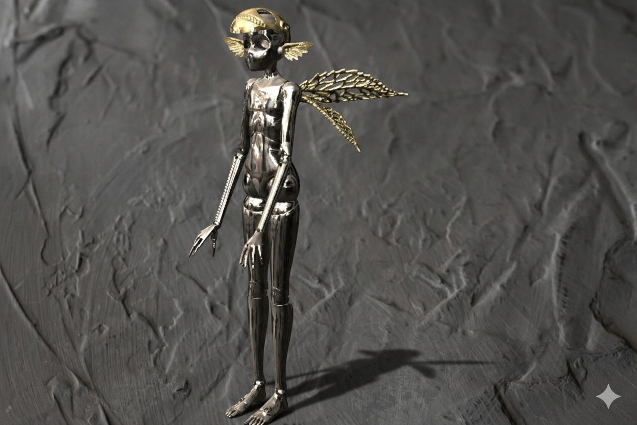 A fusion of fine craftsmanship and kinetic art. Discover the unique Tooth Fairy articulated doll, a masterpiece of craftsmanship created by Jewelryrider. This collectible doll is available in your choice of lustrous Silver 925 or rich Bronze, offering two distinct aesthetics to suit your preference.